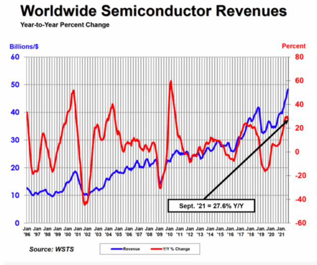 2021年9月半導體銷售額為483億美元。和2020年同期相比,銷售額提高27.6%;和前月相比,銷售額也提高7.4%。SIA代表98%的美國半導體產業,以及近2/3的非美國晶片商。