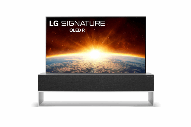LG的可捲式電視,螢幕為65吋,在2019年的美國賭城消費電子展(CES)首次亮相。使用時螢幕能從下方的黑盒內升起,不用時螢幕能收回盒內,突顯可捲式電視的優勢,此種電視沒有背光模組,能夠捲折彎曲。