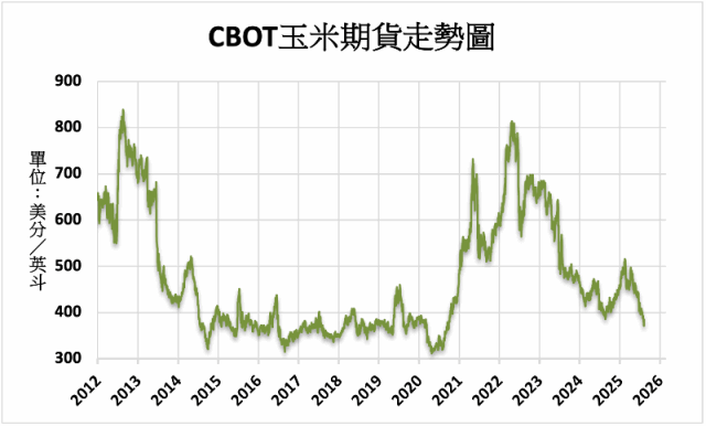 2025/26年度玉米期末庫存預計為21.17億英斗,較上月上調4.57億英斗。如果成真,這將是七年來最高水平。對於舊作物國內玉米,USDA也將期末庫存預估下調3500萬英斗至13.05億英斗。