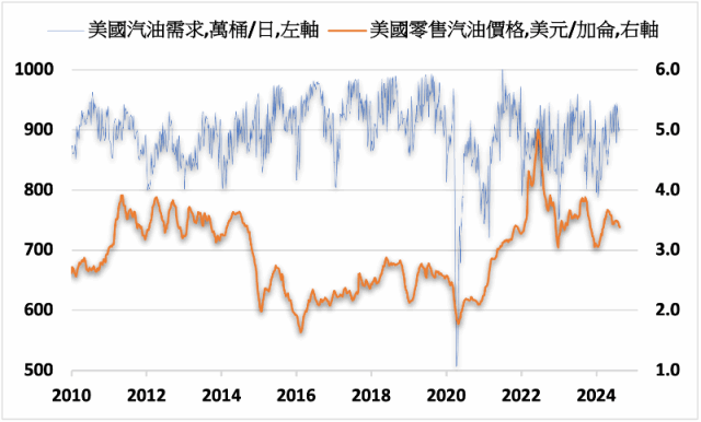 美國汽油價格的季節性趨勢通常於春季上揚,因煉油廠季節性維護以及轉換生產較為純淨、成本較高的夏季汽油(冬季汽油為改善冷起動特性而含有較多低成本與低沸點的丁烷等物質),與夏天開車旺季即將來臨帶動需求的影響。