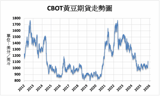 農業網站《AgWeb》報導,北極星商品公司(Northstar Commodity)共同創辦人兼執行長馬克·舒爾茨(Mark Schultz)表示,作為對中國採購協議的回應,黃豆市場推升至本輪上漲的新高,10月31日芝加哥黃豆期貨突破每英斗11美元大關,創下15個月來的新高。美國財政部長史考特·貝森特(Scott Bessent)表示,中國同意在2025年購買1200萬噸美國黃豆,並在隨後三年內每年購買2500萬噸。