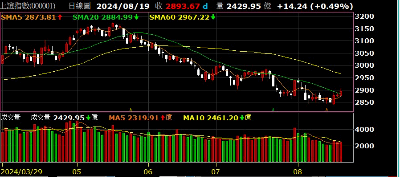 MoneyDJ新聞 2024-08-19 16:32:42 記者 新聞中心 報導 中國滬深兩市三大指數今(19)日集體開低,早盤黃金概念持續強勢、跨境支付概念走高,惟受到AI眼鏡概念回檔影響,指數集體衝高後回檔;午後,滬指維持高檔,深證成指、創業板指則於平盤附近調整。滬指2900點得而復失,終場收漲0.49%,連續三日走揚。