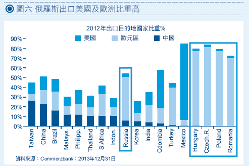 成熟歐洲緩步復甦,俄羅斯也即將回神:已開發國家景氣回神,尤其是歐洲自谷底反轉氣勢最盛,而東歐各國(包含俄羅斯)因出口美國及歐洲比重高,有望優先受惠(圖六)。