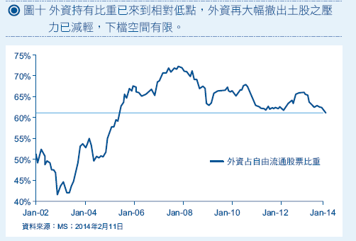 外資持有比重已來到相對低點:外資持有土耳其自由流通股票比重已來到九年來新低61.2%(圖十),顯示外資再大幅撤出土股之壓力已減輕,下檔空間有限。