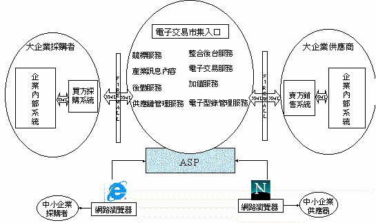 眾所矚目的「電子交易市集」其定義則是:「在網際網路上,一個提供上下游買賣雙方進行產品或服務交易的中立場所」,一般而言應該是由中立的第三者或是由買方、賣方共同出資成立,而且必須要有開放式的加入規則,使得企業間的商務行為不再侷限於以往的合作夥伴,各種中小型企業也可以有機會在此場所公平的進行交易,進而能夠迅速獲得更為物美價廉的產品或服務,生產出更具競爭力的產品。