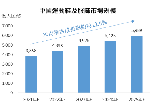 此外,中國疫情受控後,預期民眾運動消費潛力逐步釋放、健康意識抬頭,中國運動品牌後續將有突破性的發展,未來5年盈餘年複合增長率預估為11.6%。