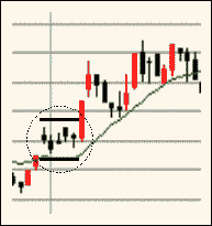 在主趨勢中會有次級的折返趨勢,但狹幅盤整(line)可視為次級折返的替代。整理型態便與道氏的狹幅盤整意義