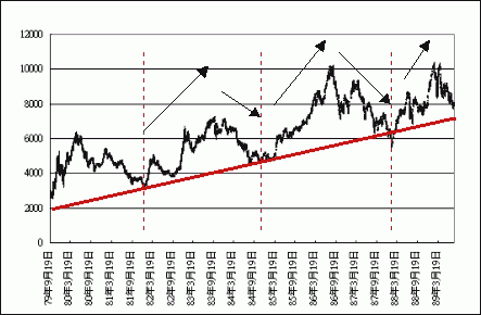 1991¦~¦Ü2000¦~¥xÆWªÑ²¼¥«³õªº¤j½L«ü¼Æ¨«¶Õ¡A¥i¥H¬Ý¥X¡A³o¬q´Á¶¡¥xªÑ«ü¼Æ¤j¬ù¸g¾ú¤F¥|¦¸ªº´`Àô¢w¥|Ó¥Dn
