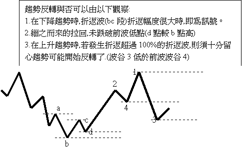 一般而言,次級折返趨勢都是較難辨識的,也因而較難以預測,有時折返幅度過大時,甚至容易造成一 般人誤以為主要趨勢發生改變。掌握次級折返趨勢的特徵,才不至於迷思於折返趨勢中。