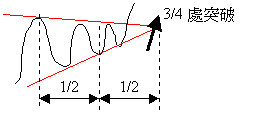 三角型態發生突破的時機通常在頂點間的1/2至3/4的範圍左右。如果超過了3/4,顯示市場仍然在猶豫不決價格