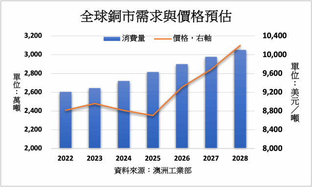 標普全球市場財智(S&P Global Market Intelligence)副主席耶金(Daniel Yergin)發布的銅市場報告表示,至2035年,全球銅需求預估將較目前倍增至每年5,000萬噸,但銅產量則預期將僅達到3,100萬噸,與需求量的預估差距相去甚遠。
