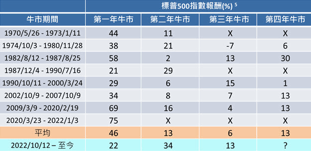 2022年10月因ChatGPT推出而興起AI熱潮,美股因AI題材進入牛市,2025年10月正式進入美股牛市第四年,統計1970年以來美股牛市表現,第四年牛市平均上漲13%顯著優於第三年的6%5。此次牛市由AI題材興起,隨著企業持續加大AI投資,預計2026年大型雲端服務商資本支出成長達18%,市場焦點仍為AI相關類股,或受惠AI發展的公司6。