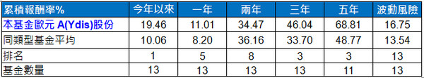 資料來源:晨星、理柏資訊,台幣計價截至2025/10/31,取晨星分類為「產業股票-環境生態」類型,波動風險為過去三年月報酬率的標準差年化值,波動風險排名居前代表風險較低。基金過去績效不代表未來績效之保證。
