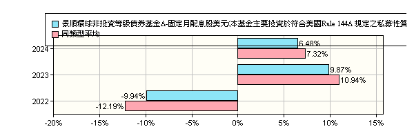 年份 景順環球非投資等級債券基金A-固定月配息股美元(本基金主要投資於符合美國Rule144A規定之私募性質債券,且基金之配息來源可能為本金,本基金非屬環境、社會、治理相關主題基金) 同類型平均