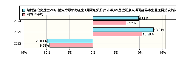 年份 路博邁投資基金-NB非投資等級債券基金T月配息類股(南非幣)(本基金配息來源可能為本金且主要投資於符合美國Rule144A規定之私募性質債券) 同類型平均