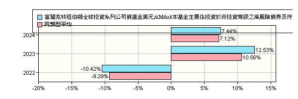 年份 富蘭克林坦伯頓全球投資系列公司債基金美元A(Mdis)(本基金主要係投資於非投資等級之高風險債券及符合美國Rule144A規定之私募性質債券且基金之配息來源可能為本金) 同類型平均