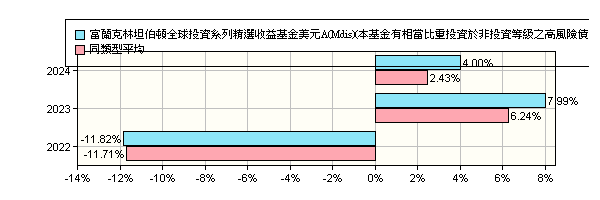 年份 富蘭克林坦伯頓全球投資系列精選收益基金美元A(Mdis)(本基金有相當比重投資於非投資等級之高風險債券且基金之配息來源可能為本金) 同類型平均