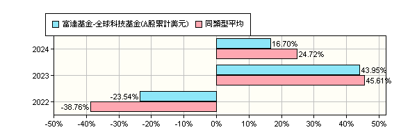年份 富達基金-全球科技基金(A股累計美元) 同類型平均
