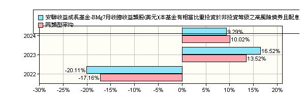 年份 安聯收益成長基金-BMg7月收總收益類股(美元)(本基金有相當比重投資於非投資等級之高風險債券且配息來源可能為本金) 同類型平均