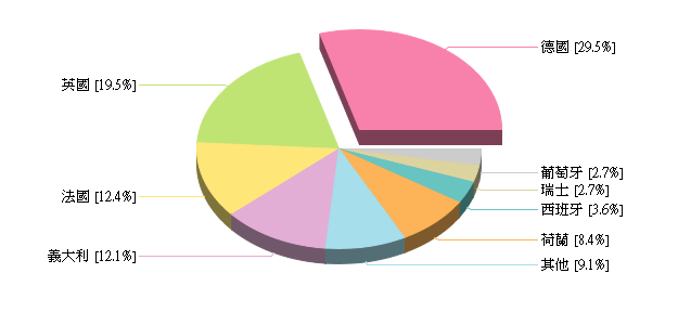 產業 | 投資金額(歐元 :以萬元為單位) | 比例(%) |