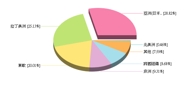 區域投資金額(美元 :以萬元為單位)比例(%)