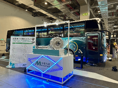 成運汽車並展示自主開發的450kW直驅馬達,公司指出,這款最高規格的馬達專為長途爬坡路段的城際電動巴士設計,提供強大的動力與高效的能量轉換效率,確保即使在最具挑戰性的路段上,巴士也能平穩運行。