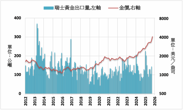 9月份,瑞士黃金進口量182.2公噸,前五大進口來源國分別為美國(48.1公噸)、阿拉伯聯合大公國(38.7公噸)、智利(21.9公噸)、秘魯(18.4公噸)與泰國(14.3公噸)。