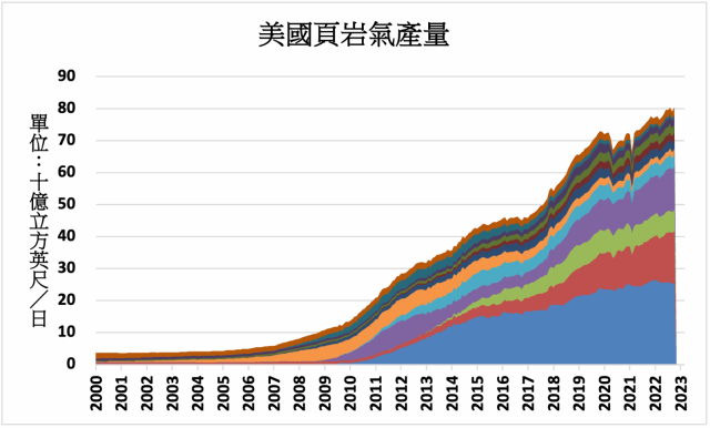 美國能源部鑽井生產力報告顯示,2023年1月,美國頁岩氣日產量預估將較12月的957.5億立方英尺增加5.35億立方英尺至962.8億立方英尺。三大產地當中,馬賽勒斯頁岩所在的阿帕拉契地區頁岩氣日產量預估較前月增加1.13億立方英尺至355.3億立方英尺,二疊紀盆地頁岩氣日產量預估較前月增加1.19億立方英尺至213.9億立方英尺,海恩斯維爾頁岩氣日產量預估較前月增加1.52億立方英尺至164.1億立方英尺。