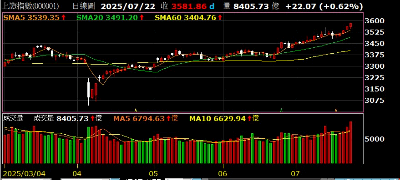 MoneyDJ新聞 2025-07-22 16:52:06 記者 新聞中心 報導 中國滬深兩市三大指數今(22)日開盤漲跌互見且隨後走勢有所分歧,在超級水力、民爆、水泥等概念股延續漲勢,以及銀行股走低、穩定幣概念持續調整的交互影響下,盤初滬指開高後震盪走跌翻黑,深證成指、創業板指則是開低後走揚翻紅;各指數盤中一度明顯下挫,惟隨後均震盪回升至平盤上方。滬指終場收漲0.62%(附圖),連續四日走揚。