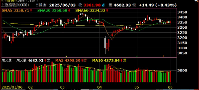 中國滬深兩市三大指數今(3)日集體開低,惟隨後在黃金、穩定幣概念股活躍,以及遊戲板塊集體大漲、足球概念拉升的刺激下,各指數均走揚翻紅。滬指終場收漲0.43%,一舉收復5日、10日線及月線。