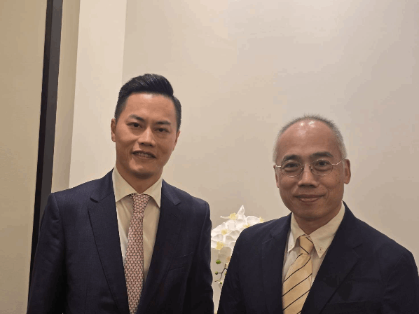 (圖片來源:記者拍攝,圖左為建新國際董事長陳彥銘)