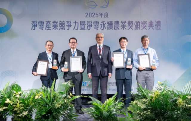 由國立中央大學台灣經濟發展研究中心與財團法人21世紀基金會共同主辦的「淨零產業競爭力獎」今(2025)年進入第四年並新增造紙、半導體製造及水泥業,與原有的鋼鐵、塑膠共五大高耗能產業計116家上市櫃公司參與,依據公開資料採計溫室氣體排放量、用水量、廢棄物量的密集度變化幅度等26項指標鑑別,最終共43家入選,上市指標紙廠皆有斬獲。榮成(1909;圖左二)、正隆(1904;圖左一)、永豐餘(1907;圖右二)、華紙(1905;圖右一)皆獲頒卓越獎,永豐實(6790)摘下特優獎。