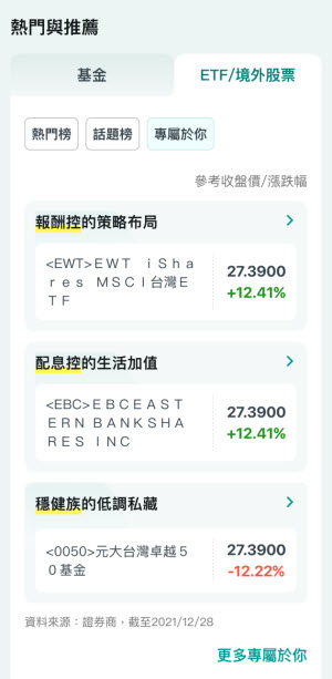 這個功能上線後,特別受到新手投資人與年輕客群的青睞,從「別人怎麼做」中找到參考依據,逐步建立自己的理財策略。即日起~本行公告截止日止,線上定期定額申購基金享0申購手續費、0信託管理費;2025/6/1~2025/12/31線上定期(不)定額申購境內ETF享申購手續費0.1%、免證券商交易手續費及信託管理費。