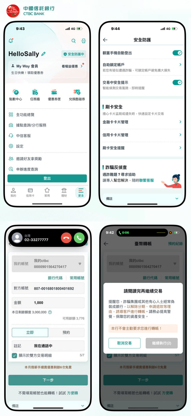 中國信託銀行「挺安全」!首創「交易中安全提示」功能防詐更升級