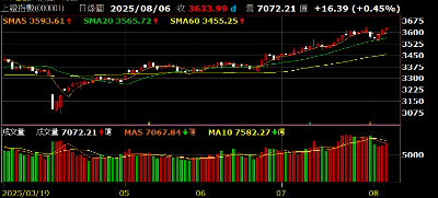 MoneyDJ新聞 2025-08-06 16:44:07 記者 新聞中心 報導 中國滬深兩市三大指數今(6)日早盤集體開低,在軍工及CPO概念股走高,以及銅纜高速連接板塊走跌、影視院線板塊持續回調的交互影響下,各指數盤初在開低後走揚翻紅,惟隨後均轉趨於平盤附近調整,午後持續走高。滬指終場收漲0.45%,連續三日走揚。
