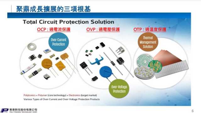 元件方面,聚鼎表示,保護元件(PPTC)目前朝向車用市場擴大規模,主要應用在汽車小馬達,鎖定日本及中國市場。過電壓保護(OVP)在多年前併購TVS廠擴產效益顯現下,今(2024)年在中國電動車及面板市場明顯見到動能;三端保險絲(CLM)在電動工具、節能、電動自行車及AI終端裝置的應用,今年成長顯著。