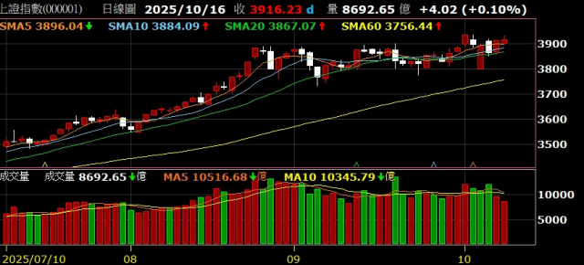 《陸股》滬指微漲、3900點失而復得;恆指日K翻黑