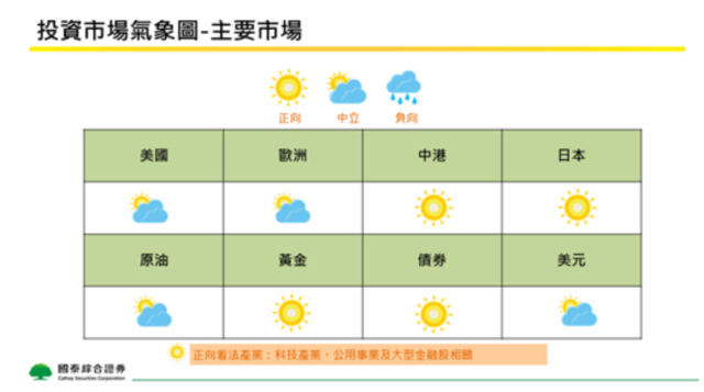 總體來看,在全球經濟逐步復甦、消費旺季及AI技術滲透等市場利多因素下,國泰證券建議投資人可聚焦於消費品、電商、科技等成長型與景氣循環產業;同時,搭配信用良好的長年期債券標的,並持續關注政策動向與產業趨勢,靈活調整資產配置,以迎接今年底的投資契機。
