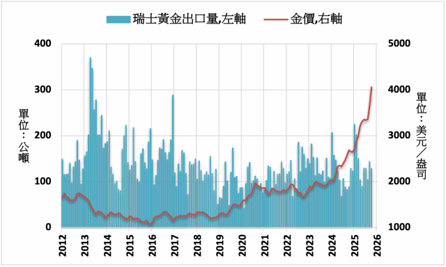 瑞士對印度的黃金出口量較前月的30公噸減少13.5%至25.9公噸,較去年同期的11.7公噸增加121%;累計今年1-10月對印度的黃金出口量年減50%至113.2公噸。