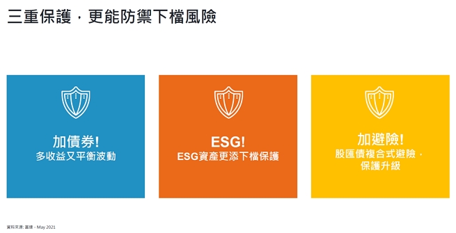 比起一般的生技醫療基金,此基金還有另一項優勢,那就是內建「三重保護」機制,包括在投組中加入債券部位,讓基金也可享「配息收益」;透過ESG評級的選股流程,讓基金增添ESG下檔保護力與穩健力;再者,則是添加股匯債複合式避險,讓資產保護再升級。如此,更能讓投資人穩健地參與全球智慧醫療的成長機會財。
