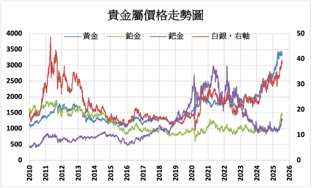 儘管德商銀對白銀與鉑族金屬(PGMs)持樂觀態度,該行商品分析師卡斯騰·弗里奇(Carsten Fritsch)強調,高金價仍是整個貴金屬板塊表現的關鍵。他表示:「從現在起,白銀與鉑金的價格很可能將主要跟隨黃金的走勢。鈀金的表現則可能較為疲弱,因為其基本面較不利。」
