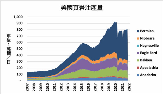挪威睿咨得能源諮詢公司(Rystad Energy)報告表示,2021年12月,美國頁岩油日產量預估將會達到868萬桶,此將創下2020年3月以來的新高,主要是受到油價上漲的激勵。其中,最大產地德州二疊紀盆地的頁岩油日產量預估將達到504.3萬桶,此將創下2015年以來的新高。除了頁岩油的產量增長之外,美國天然氣產量預估也將創下6年新高。