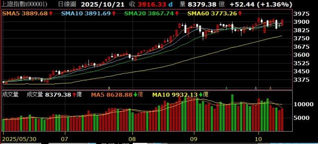 《陸股》滬指漲1.36%、重返3900點;恆指漲0.65%