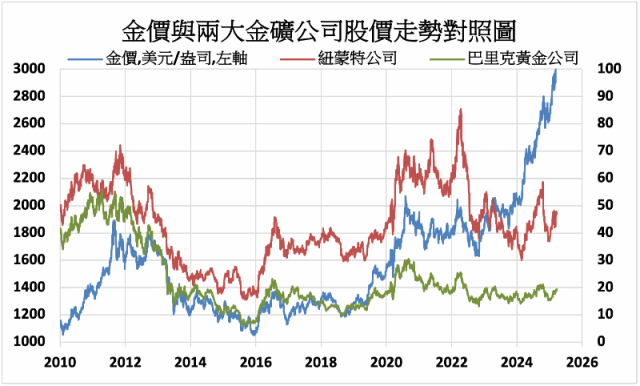 報導指出,2024年,儘管金價上漲,但金礦商仍受到勞動力與燃料成本上升的壓力,加上監管問題(如馬利的稅務爭議和加拿大的項目延誤),導致投資者更傾向於購買實體黃金基金,而非金礦公司股票基金。今年以來,兩大金礦商紐蒙特公司(Newmont Corporation)和巴里克黃金公司(Barrick Gold Corporation)的股價已完全收復2024年的跌幅(去年分別下跌10%與7%),目前分別上漲27%和21.5%。