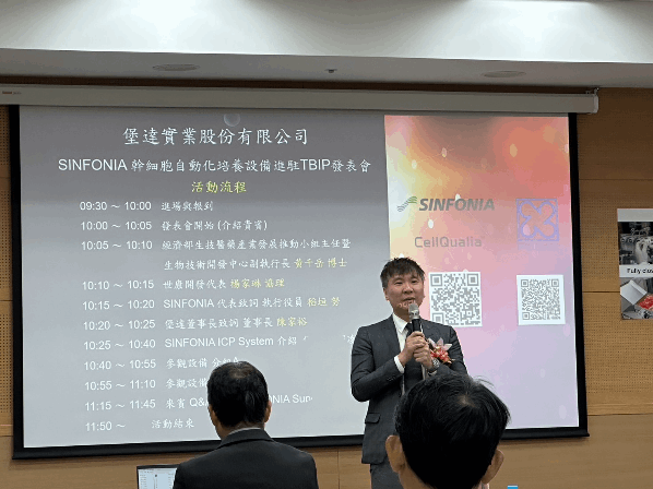 堡達表示,公司於今(2024)年中,正式取得日本SINFONIA授權,協助安裝並展示該設備。SINFONIA「CellQualia智慧細胞處理系統」設備已在10月正式進駐台北生技園區15樓的共同實驗室。