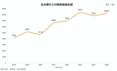 根據591新建案統計六都、新竹今年329檔期推案,整體總銷金額8223.2億元創下歷年次高,較去年同期微幅成長5%,但進場個數約346件,年減直逼1成。各縣市強弱有別,像新竹、台南、高雄更淪為「金龍重災區」,新案供給均大幅衰退,反而是雙北在指標個案和高房價支撐下,總銷仍繳出逾2至3成增幅,為本次增添不少看點。