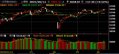 MoneyDJ新聞 2025-06-11 17:09:20 記者 新聞中心 報導 中美談判達成貿易框架,提振市場情緒,中國滬深兩市三大指數今(11)日早盤集體開高,盤中在深圳國企改革、能源金屬股走高、汽車產業鏈集體走強,以及主要權值股如中國石油、招商銀行、中國平安拉抬帶動下,各指數均震盪走揚。滬指站上3400點,終場收漲0.52%(附圖)。