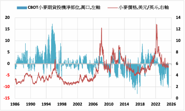 美國商品期貨交易委員會4月25日報告顯示,截至4月22日,資金管理機構(主要為避險基金)以及其他大額交易人所持有的芝加哥小麥期貨投機淨空單較前週增加6.4%至93,969口,淨部位創下3週新低。玉米期貨投機淨多單較前週減少6%至219,843口。黃豆期貨投機淨多單較前週增加11%至55,684口,創2023年11月以來的新高。