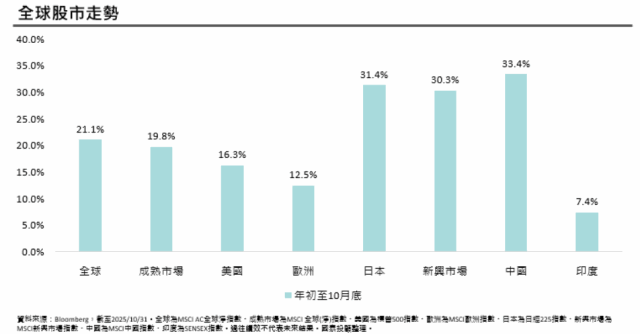 受益於美國關稅稅率低於預期、企業快速調整供應鏈、寬鬆金融環境、主要經濟體財政刺激,以及AI蓬勃發展,全球經濟今年以來表現強勁,國際貨幣基金組織(IMF)更是二度上調全球經濟成長,將2025年全球經濟成長預期由3.0%上調至3.2%。