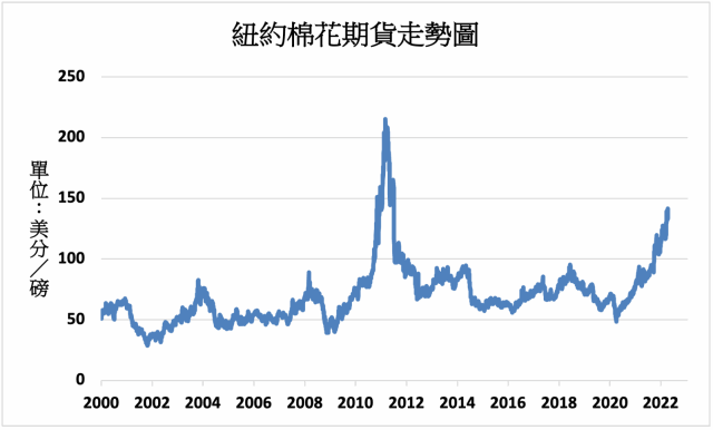美國洲際期貨交易所(ICE Futures U.S.)7月棉花期貨4月13日上漲3%至每磅141.51美分,續創十年以來新高,主要受到美國產區天氣乾旱的影響;截至4月10日,美國棉花種植進度較前週的4%增加至7%,低於去年同期的8%。7月粗糖期貨下跌0.4%至每磅20.10美分。